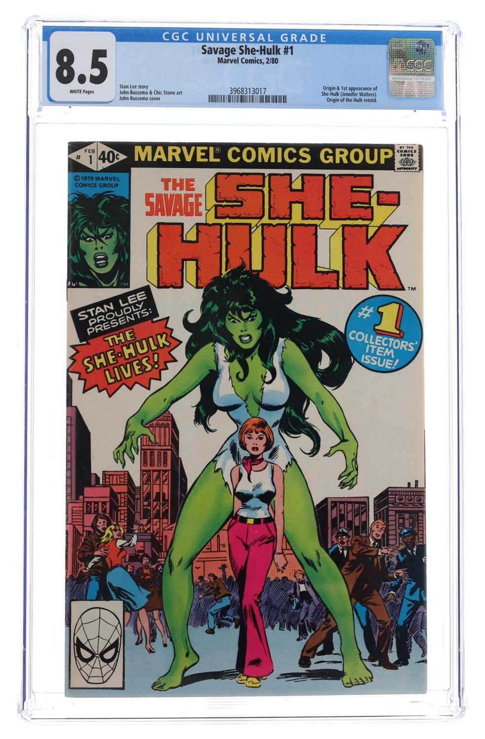 Marvel Comics, The Savage She-Hulk, 'The She-Hulk lives' issue #1, circa 1980, CGC graded 8.5, white pages, key issue, origin & 1st appearance of Jennifer Walters as She-Hulk, origin of the Hulk retold, story by Stan Lee, John Buscema cover & art & Chic Stone art