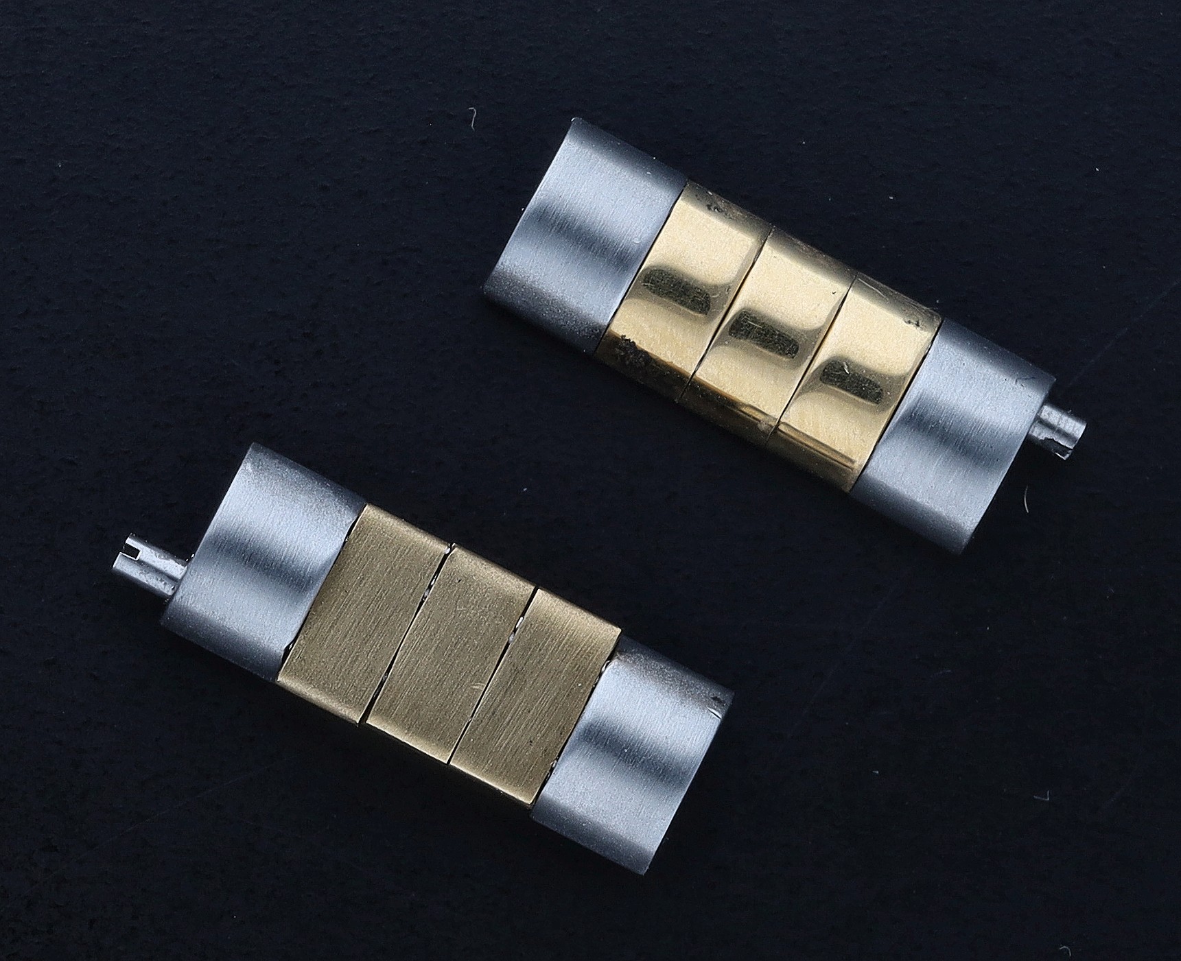 Rolex - two gold and stainless steel bracelet links, 16mm, 3.2gm