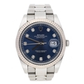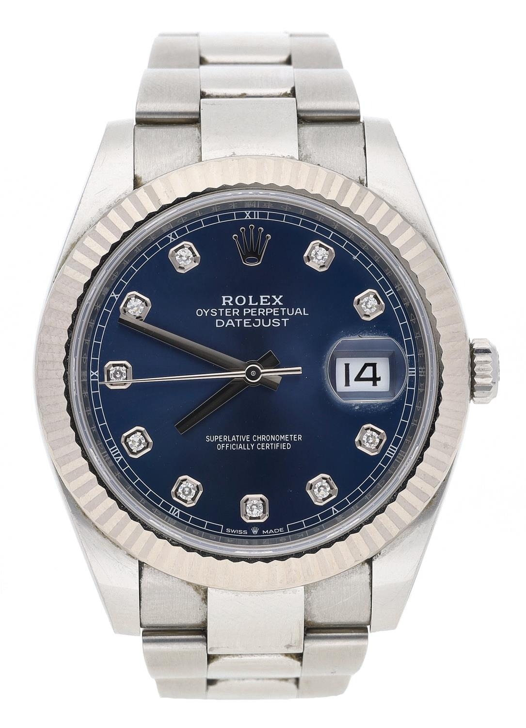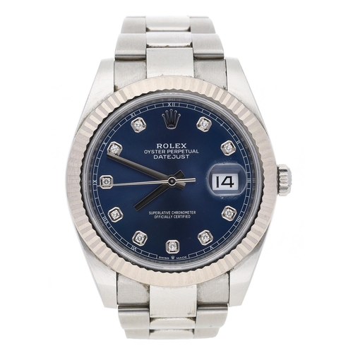 Rolex Oyster Perpetual Datejust 41 stainless steel and white gold gentleman's wristwatch, reference no. 126334, serial no. 6K97xxxx, circa 2020, navy dial with diamond markers, white gold fluted bezel, Oyster bracelet, 41mm