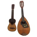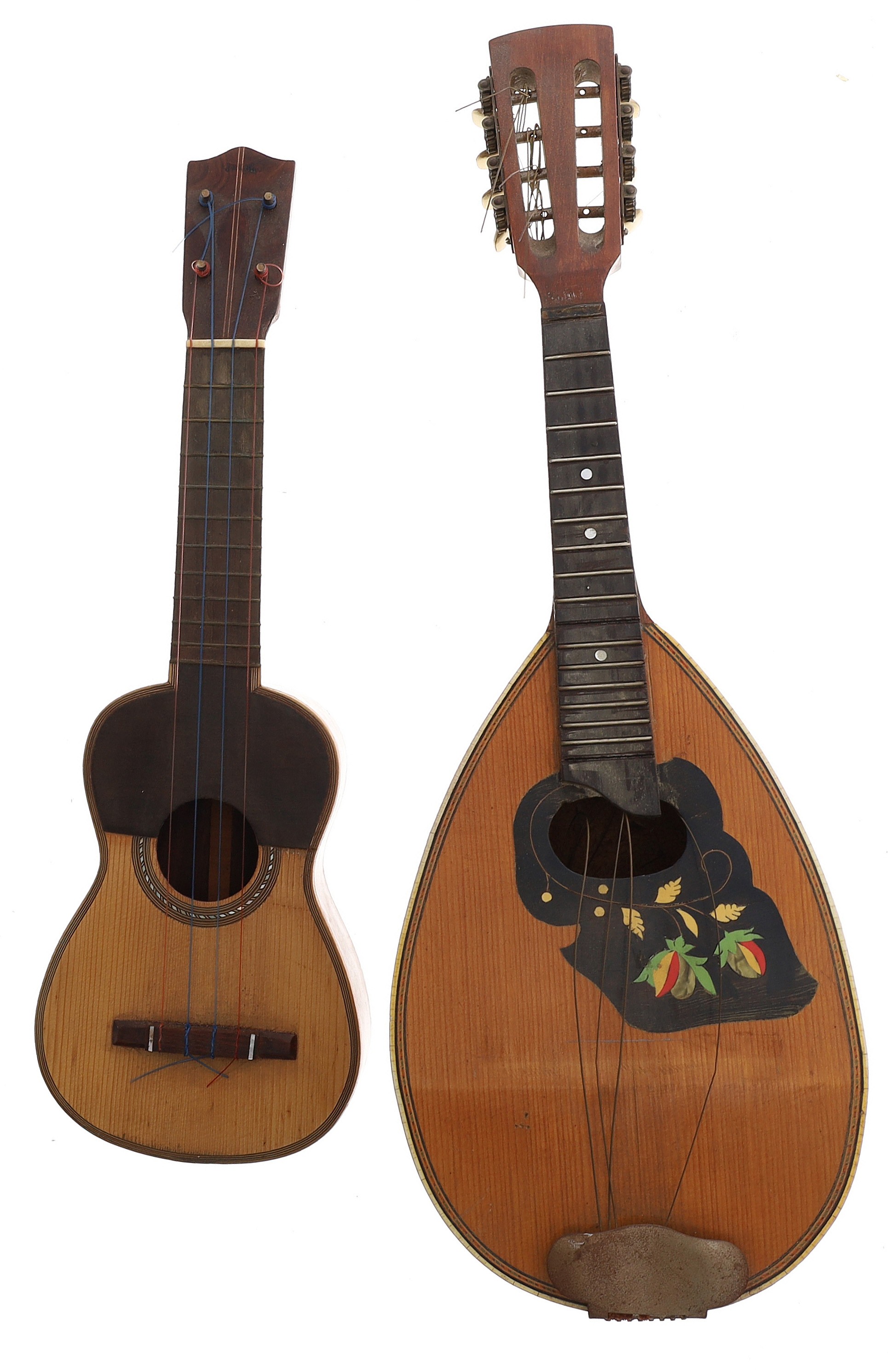 Jetel ukulele, with rosewood back and sides and spruce table, case; also an old mandolin in need of restoration (2)