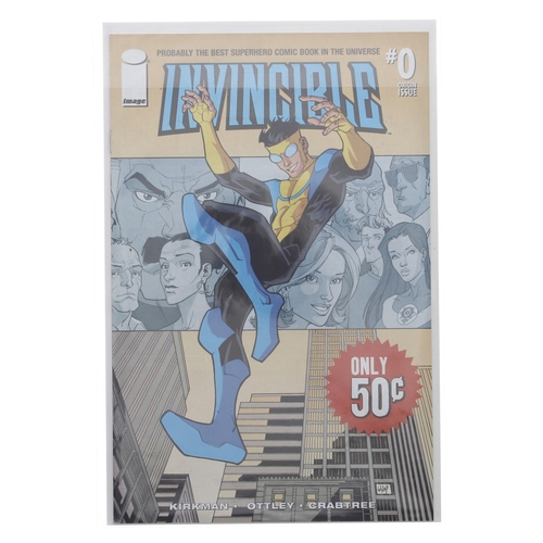 Invincible issue #0, circa 2005, origin issue, together with another Invincible origin issue #0, both bagged and boarded (2)
