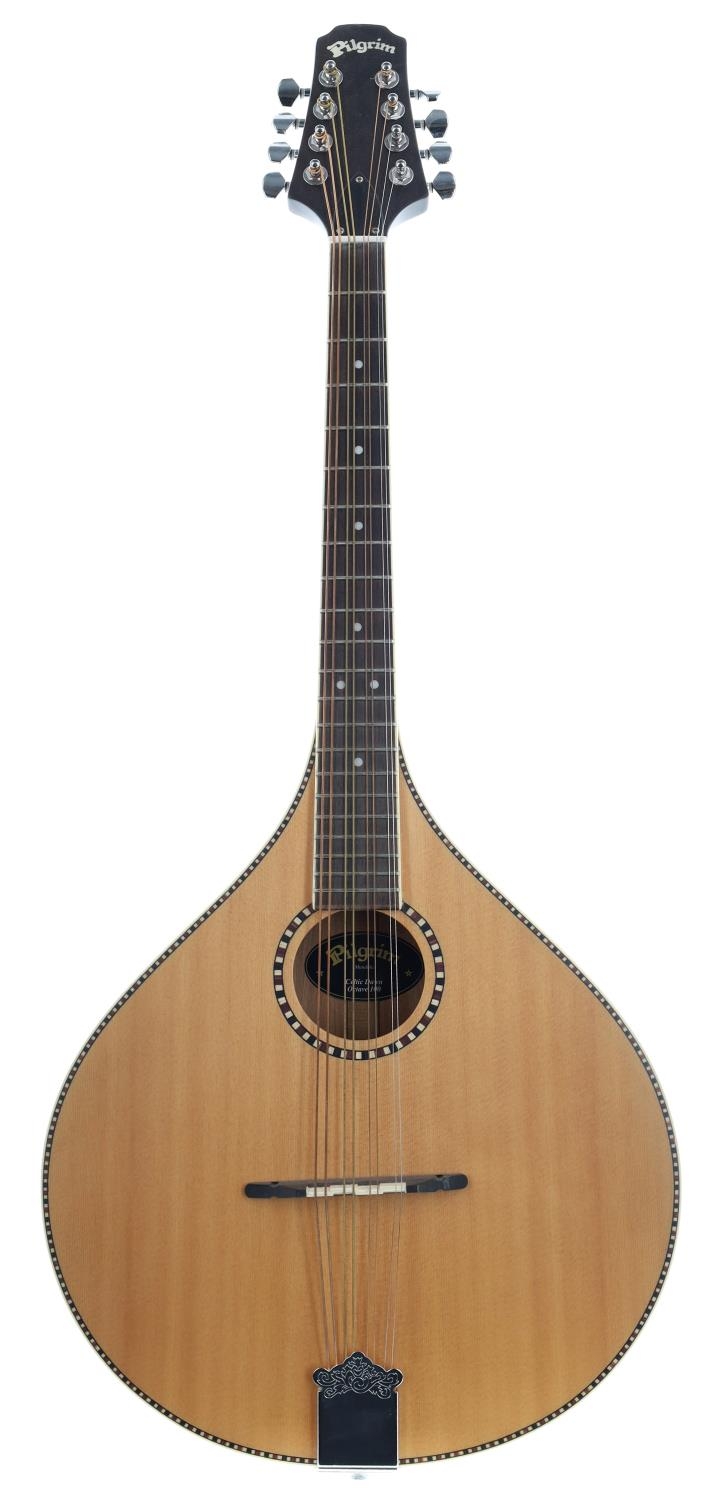 Pilgrim Celtic Dawn octave 100 Mandola, with dark wood faux ivory banded back and sides, chevron banded spruce table, original soft case