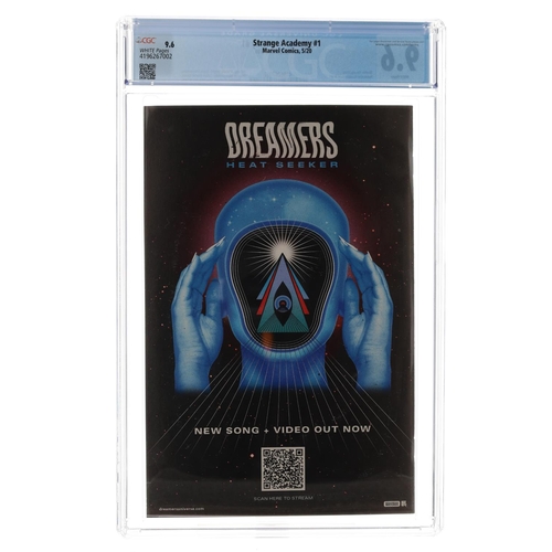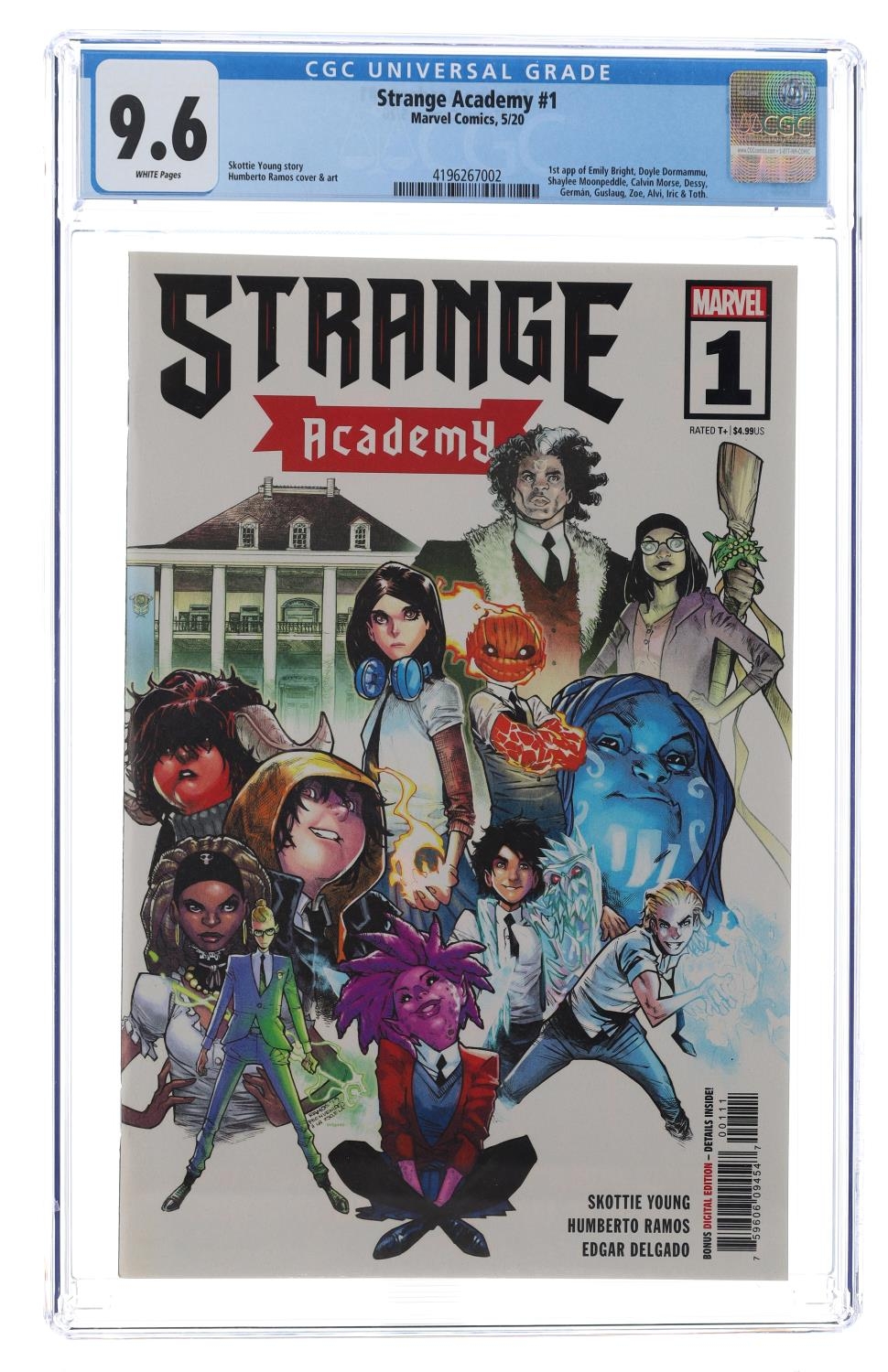 Marvel Comics, Strange Academy issue #1, circa 2020, CGC graded 9.6, white pages, 1st appearance of Emily Bright, Doyle Dormammu, Shaylee Moonpeddle, Calvin Morse, Dessy, German, Guslaug, Zoe, Alvi, Iric & Toth, story by Skottie Young & Humberto Ramos cover & art