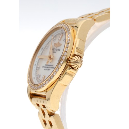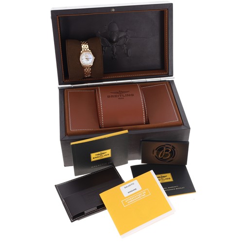 Breitling Galatic 29 Sleek Edition 18ct rose gold and diamond set lady's wristwatch, reference no. H7234853/A792, serial no. 6066xxx, No. 1xx, circa 2017, mother of pearl dial with diamond markers and date aperture, diamond set bezel, quartz, Breitling bracelet, 112.7gm, 29mm