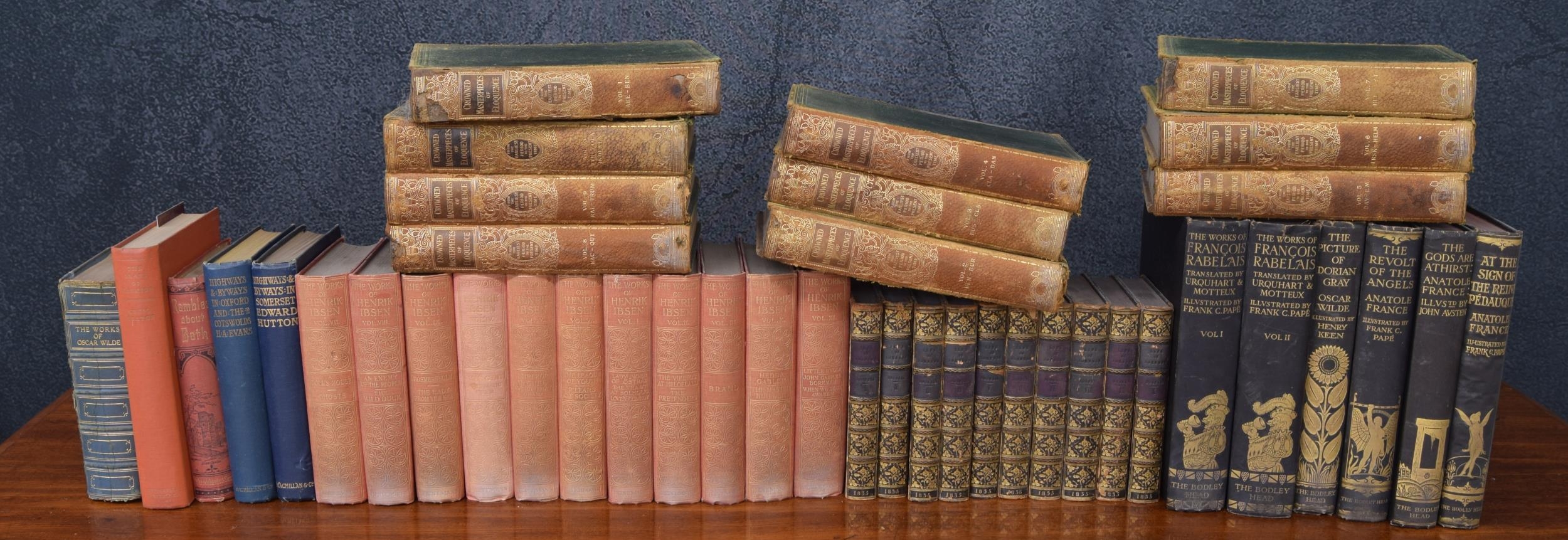 The Works of Henrik Ibsen, ten volumes, William Heinemann publishers 1910; together with Crowned Masterpieces of Eloquence vol 1-10; also other books various