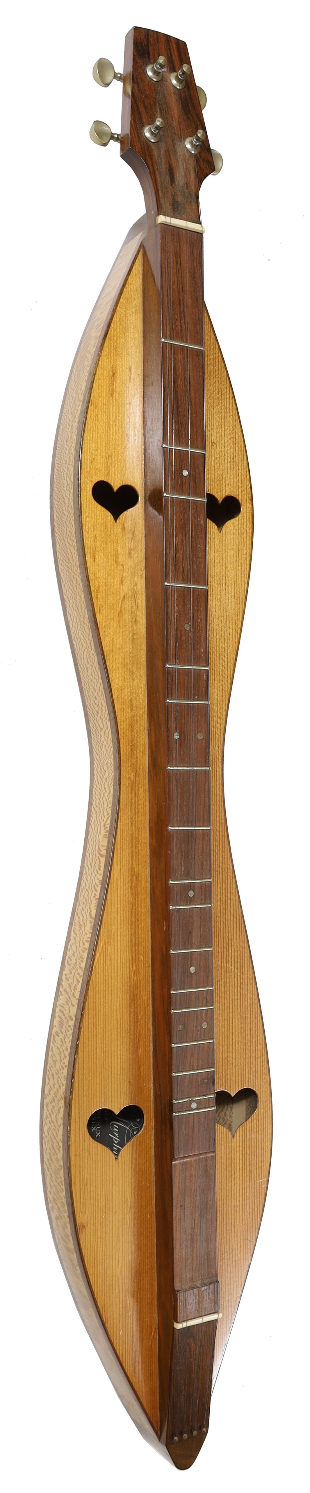 Appalachian dulcimer labelled Barry Murphy, Luthier, Herstmonceux, East Sussex, 2001..., the spruce table with four pierced heart shaped sound holes, 36.5" long overall