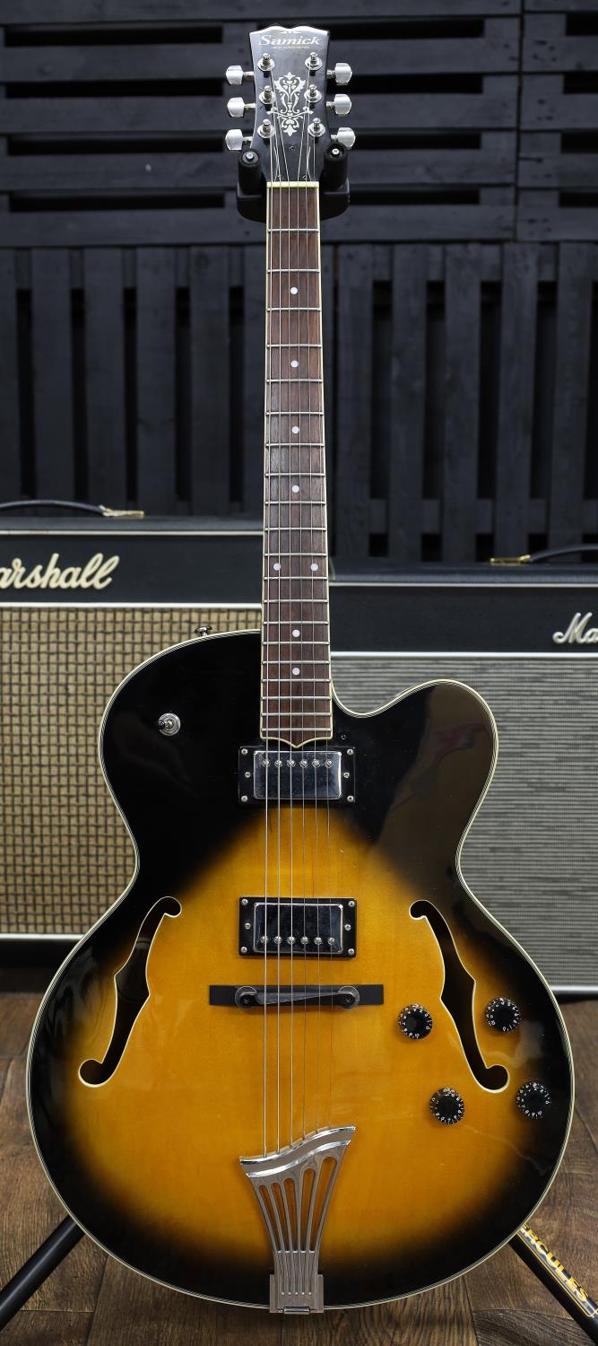 2003 Samick IHJ-20/GS hollow body electric guitar, made in Indonesia, two-tone sunburst finish