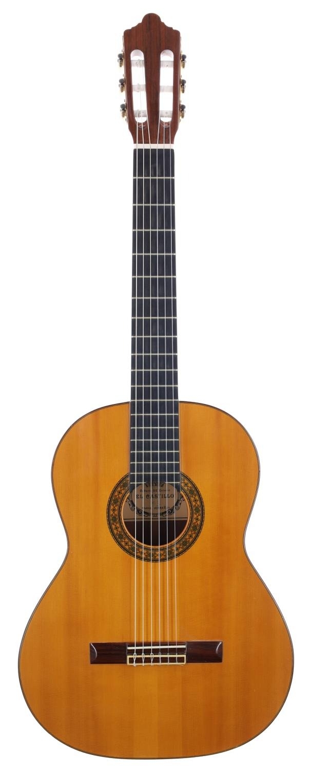 El Castillo M-3 classical guitar, made in Madrid, Spain; Back and sides: Indian rosewood; Top: natural cedar, a few minor dings; Neck: cedar; Fretboard: ebony; Frets: good; Case: fitted hard case; Scale length: 655mm; Nut width: 54mm; Overall condition: good