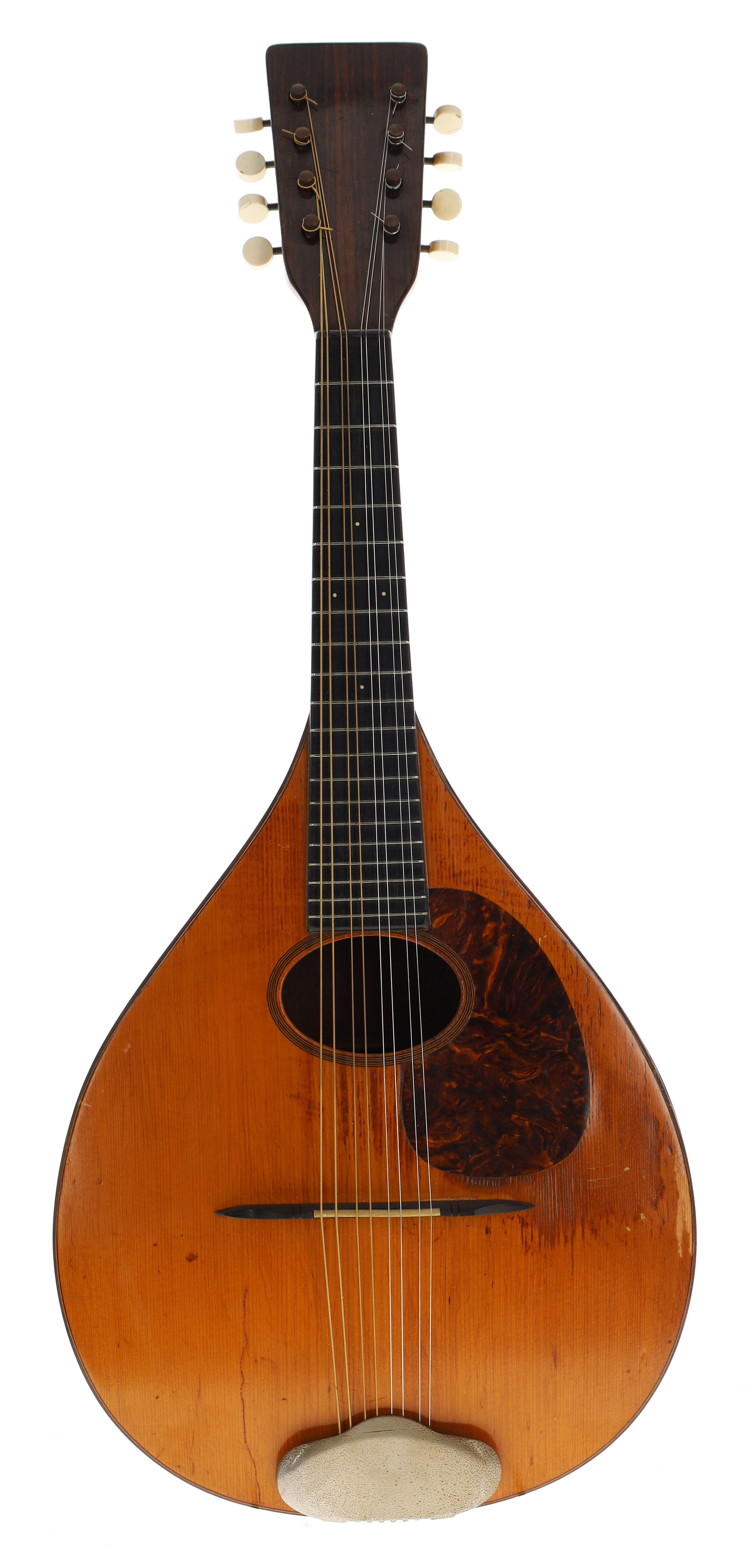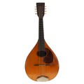 C F Martin & Co pear shaped mandolin circa 1920s, stamped C.F. Martin & Co, Nazareth, P.A. to the back of the peg box, with faux tortoiseshell scratchplate, spruce table and rosewood faced head, the original case in need of restoration; also with a Stagg modern case
