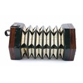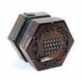 English treble concertina probably by Scates, with forty-eight metal buttons on foliate pierced rosewood ends, five-fold bellows