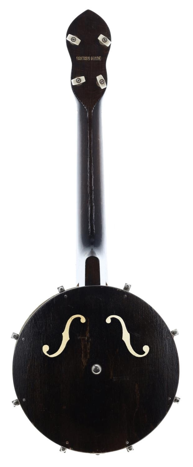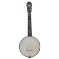 George Formby Dallas Model 'A' banjolele, with facsimile signature to the 8" skin, f-holes to the resonator back and George Formby badge to the head, case