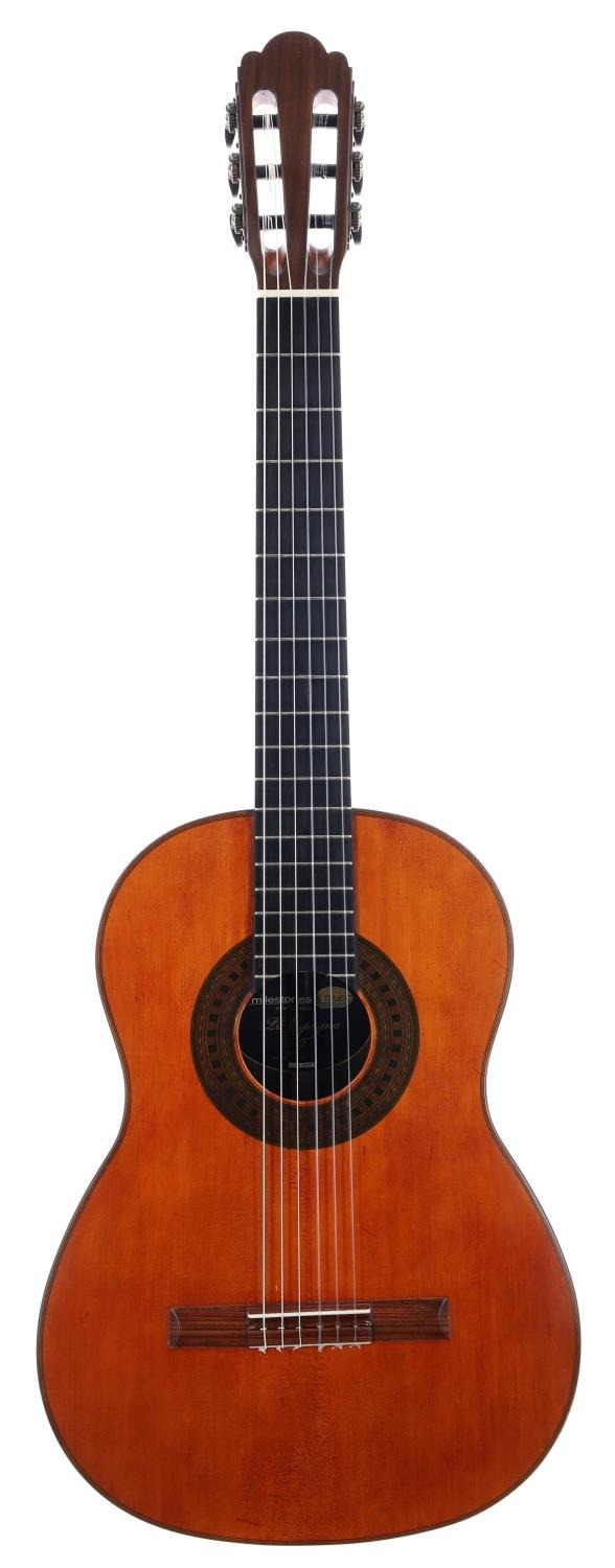 Milestones of Music La Espagna classical guitar, made in China; Back and sides: Indian rosewood; Top: aged cedar; Neck: cedar; Fretboard: ebony; Frets: good; Case: original hard case; Scale length: 650mm; Nut width: 52mm; Overall condition: good