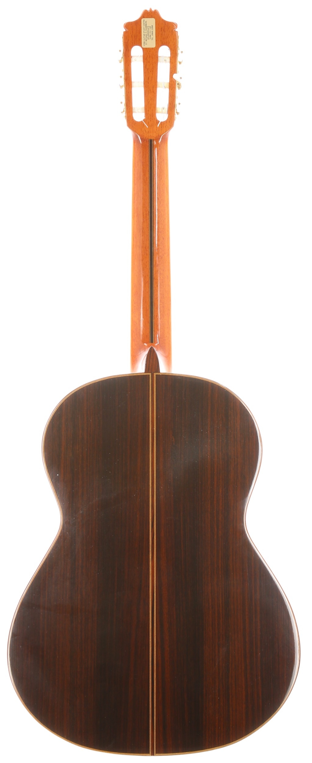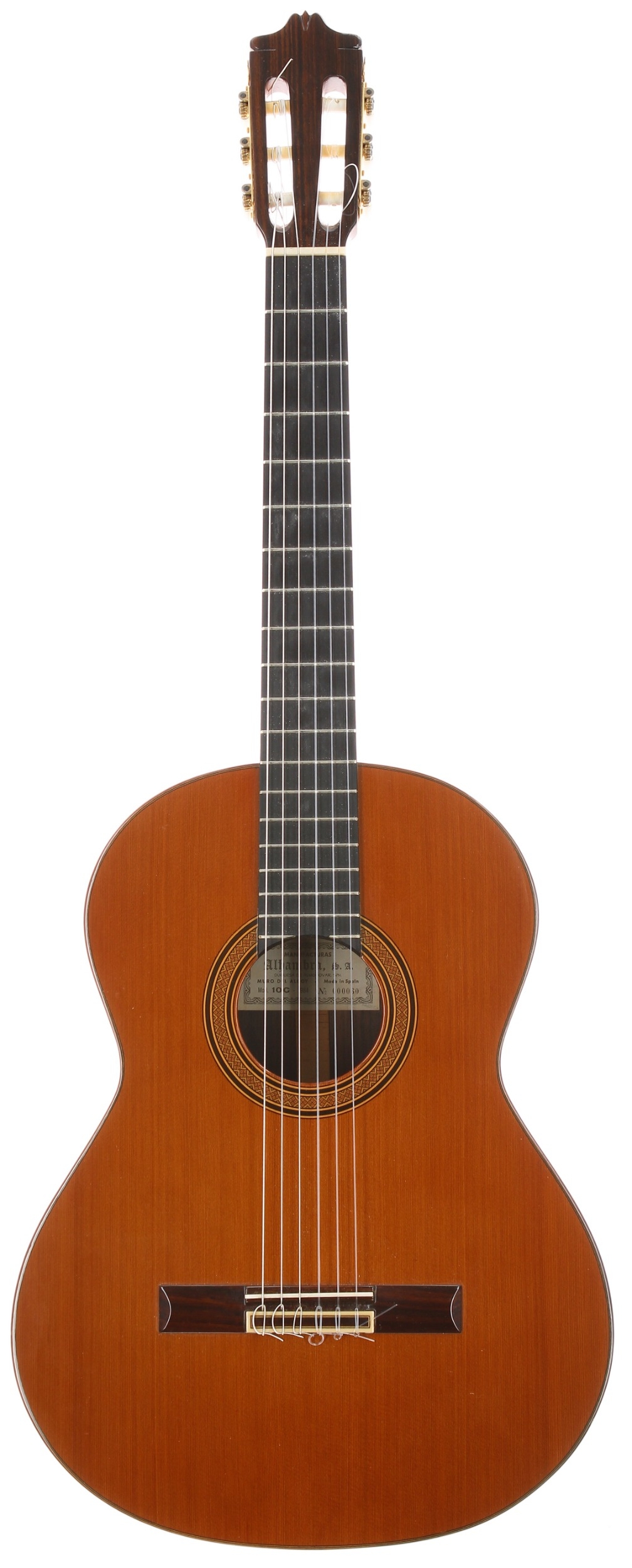 1984 Alhambra 10C classical guitar, made in Spain; Back and sides: Indian rosewood; Top: natural spruce; Neck: cedar with ebony reinforcements; Fretboard: ebony; Frets: light wear; Hardware: good, damage to tuning peg; Case: Garrido hardcase; Overall condition: very good