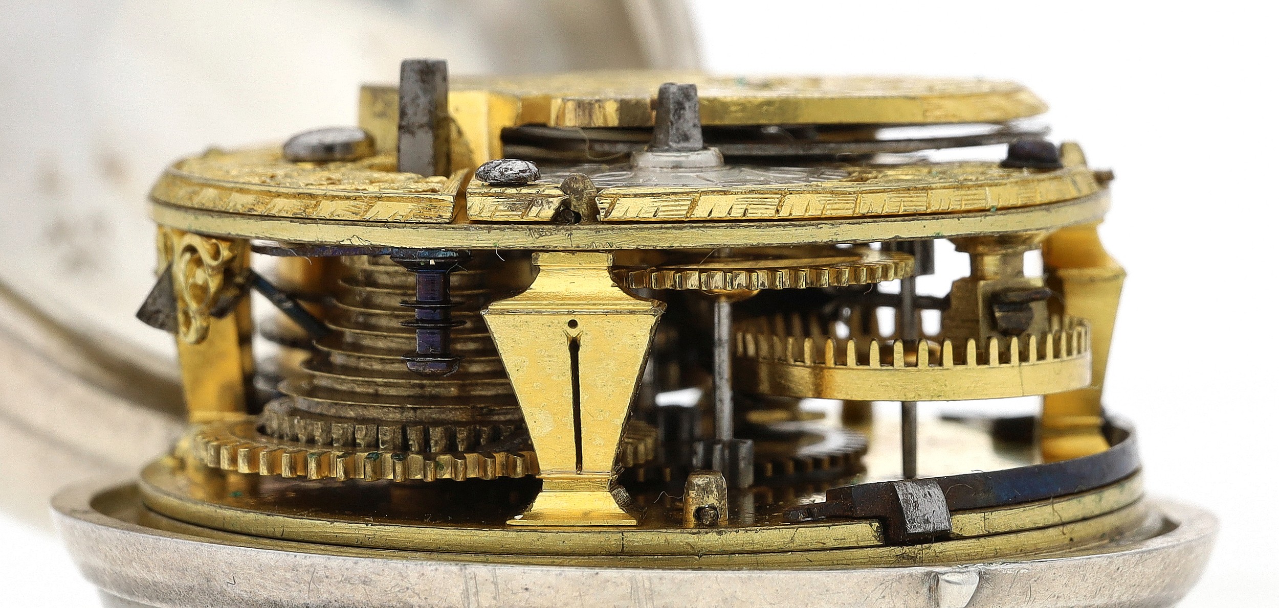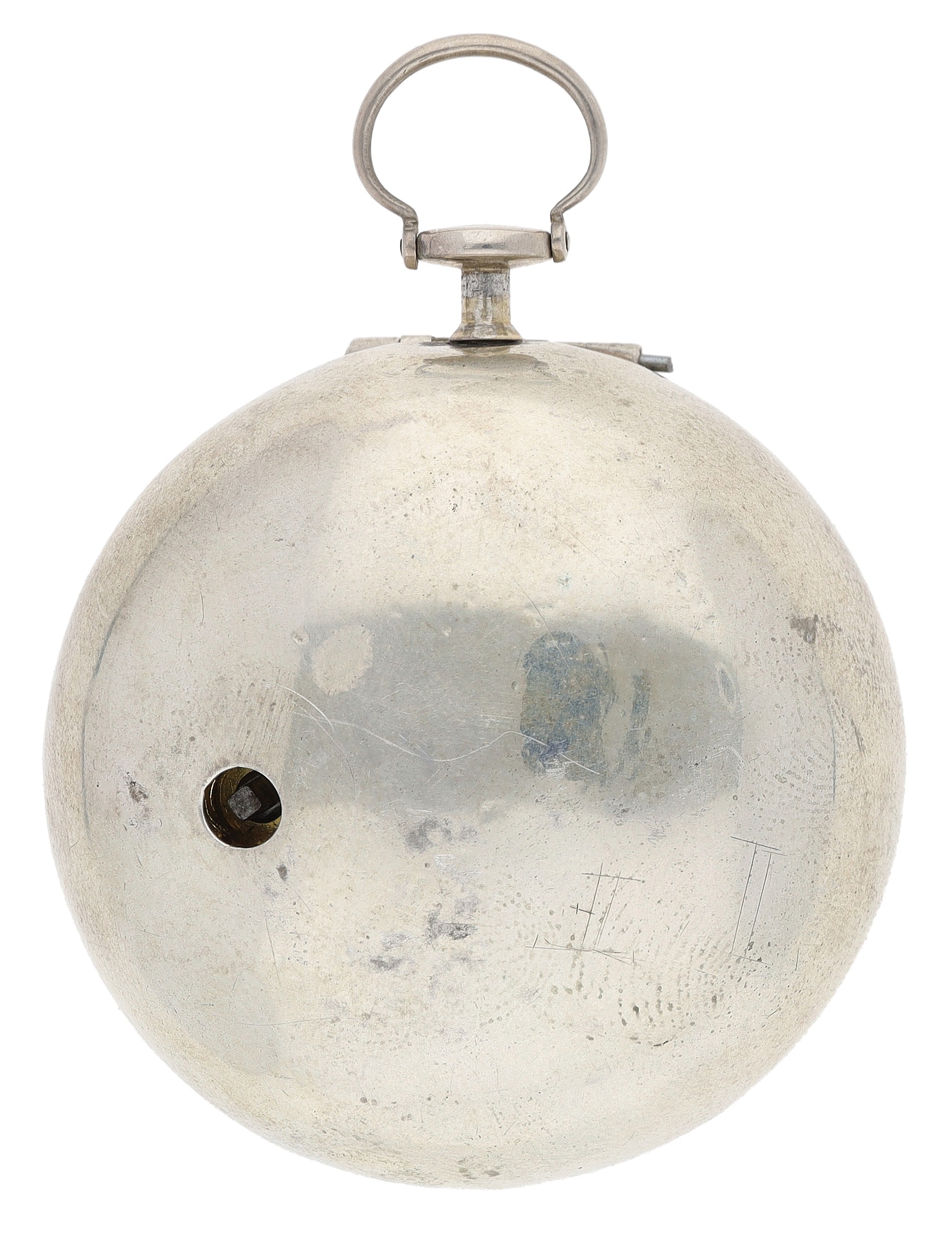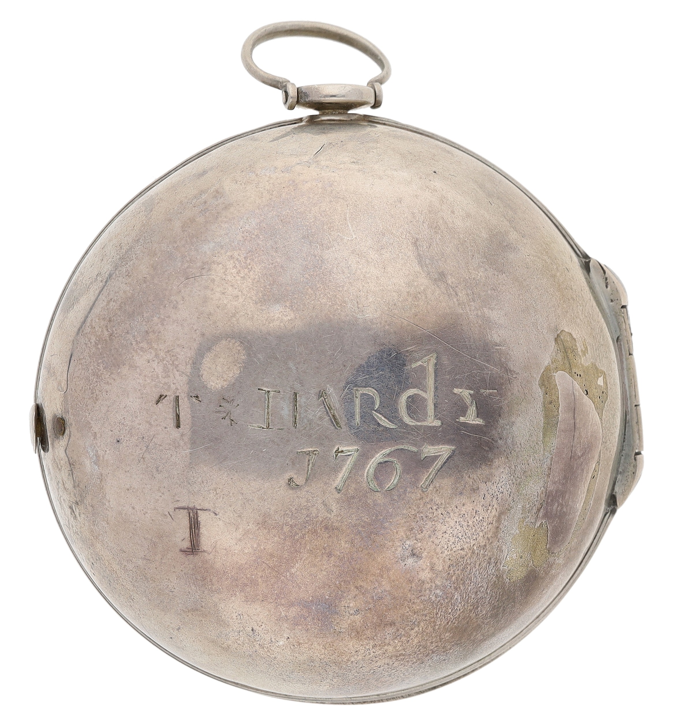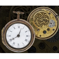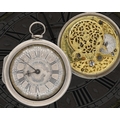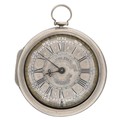 John Free, Oxon - fine early 18th century silver pair cased verge pocket watch, No. 47, signed fusee movement with flat steel balance, pierced and engraved winged balance cock and foot, silver regulating dial and Egyptian pillars, signed champlevé dial with Roman numerals and Arabic minute numerals, beetle and poker hands, bulls eye glass, plain cases with the outer case engraved 'T. Hardy 1767', case maker I.W', 56mm