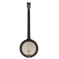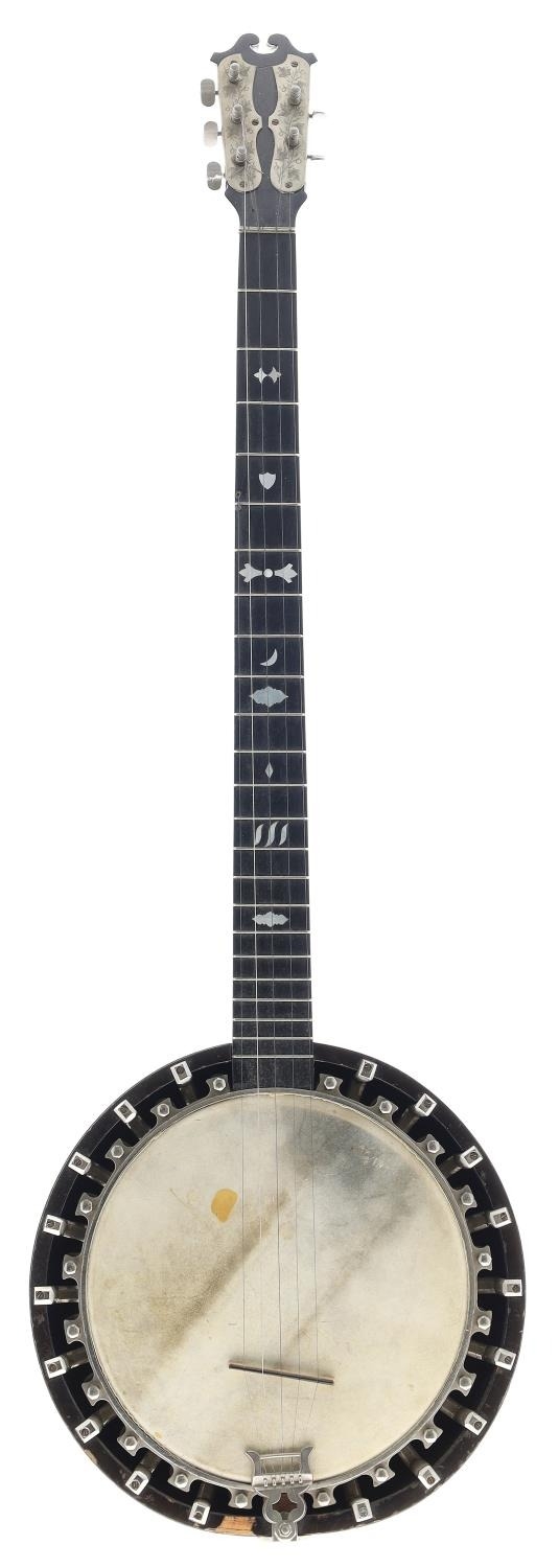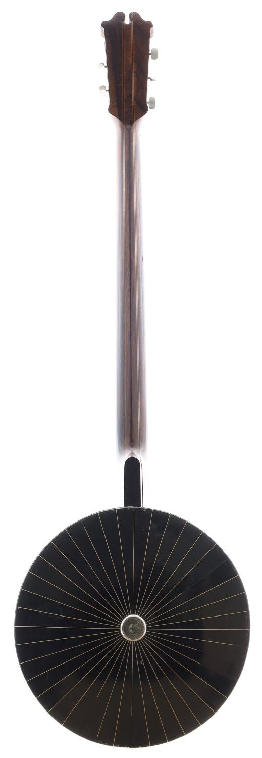 Good H. Webb zither banjo, with ebony sunray back bearing the Windsor Patent trademark badge to the centre, with 8.75" skin, stamped H. Webb, W. Hampton to the heel of the laminated rosewood neck, with geometric mother of pearl inlay to the fretboard and foliate engraved machine heads, soft case