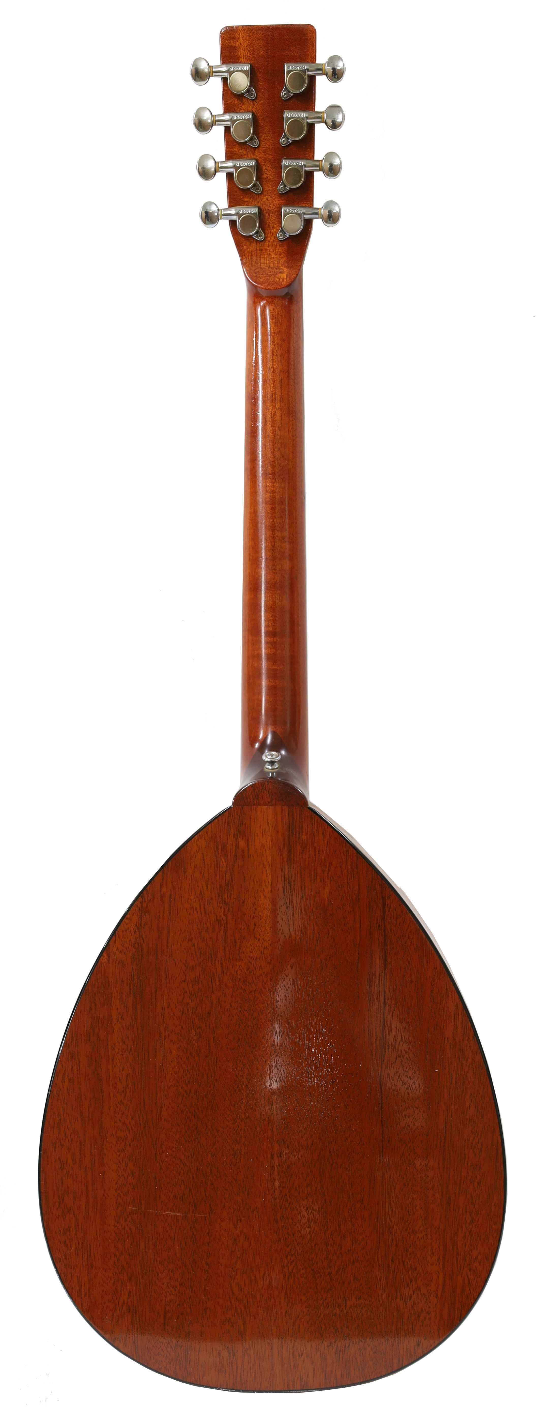 Good Fylde mandola labelled Fylde Octavius, no. 4107, the pear shaped body with banded mahogany back and sides, spruce table and mother of pearl position markers to the fretboard, total length 36"