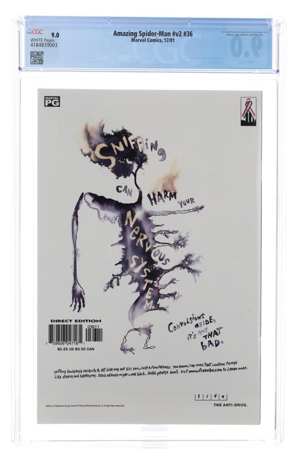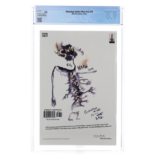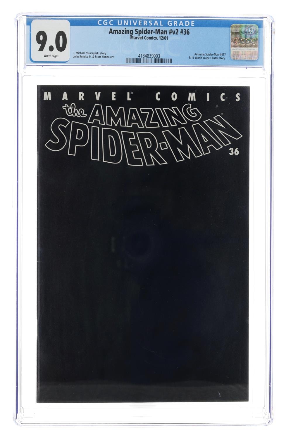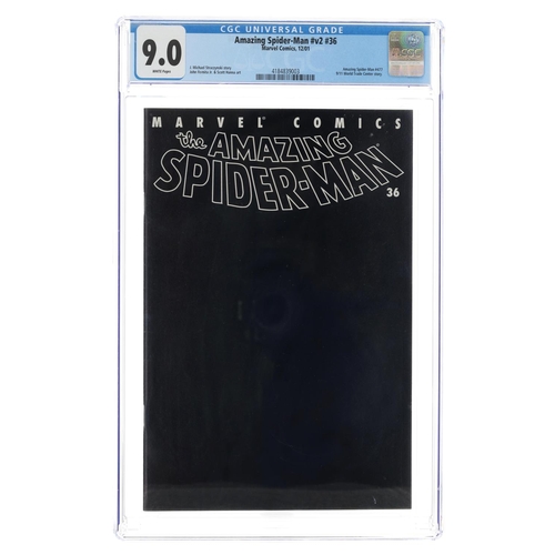 Marvel Comics, The Amazing Spider-Man issue #v2 #36 9/11 World Trade Centre tribute, circa 2001, CGC graded 9.0, white pages, J. Michael Straczynski story, art work by John Romita Jr. & Scott Hanna
