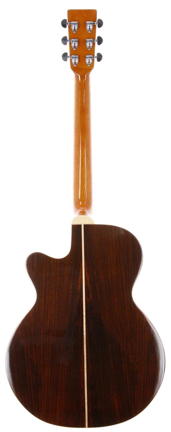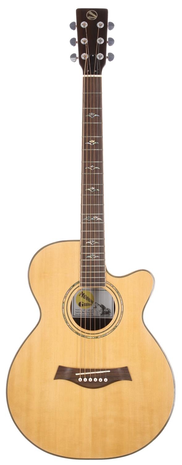 2008 Moondog Guitars Spirit cutaway acoustic guitar; Back and sides: Indian rosewood; top: natural spruce; Neck: mahogany; Fretboard: rosewood; Frets: tarnished and oxidised in places; Hardware: good; Case: compressed foam case; Overall condition: good