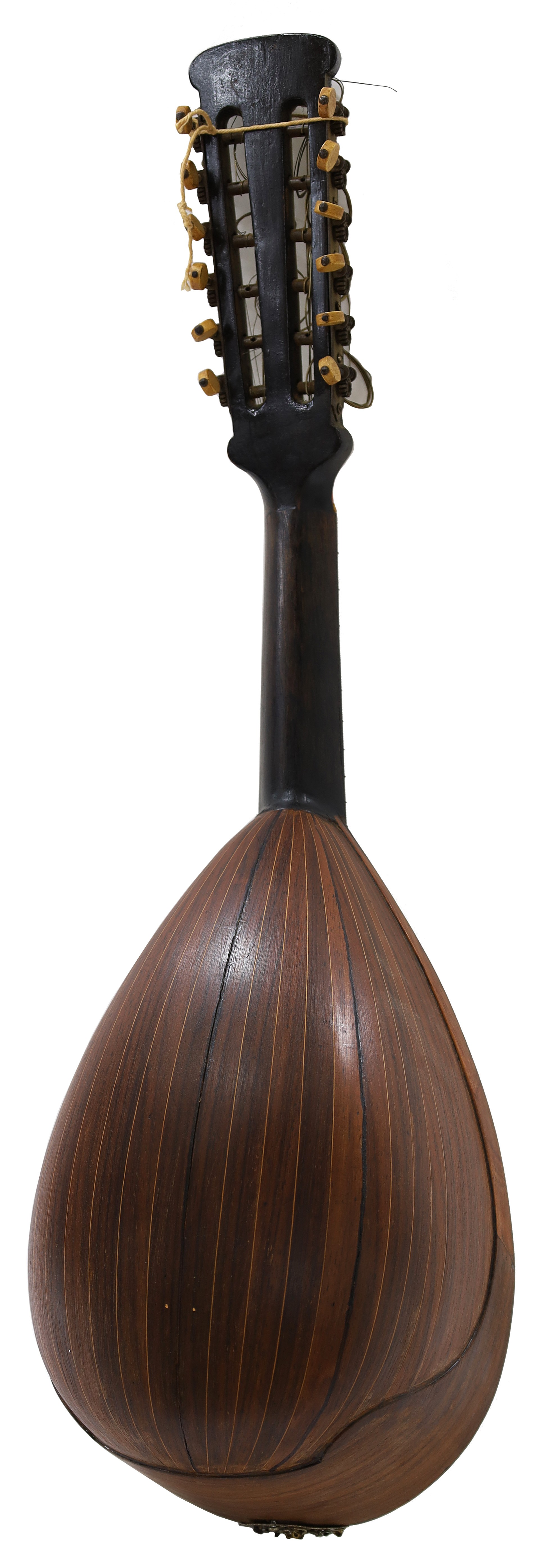 Neapolitan twelve string mandolin labelled Carlo Ricordo, Napoli, N.1200RE..., with decorative mother of pearl foliate inlaid scratchplate and painted table