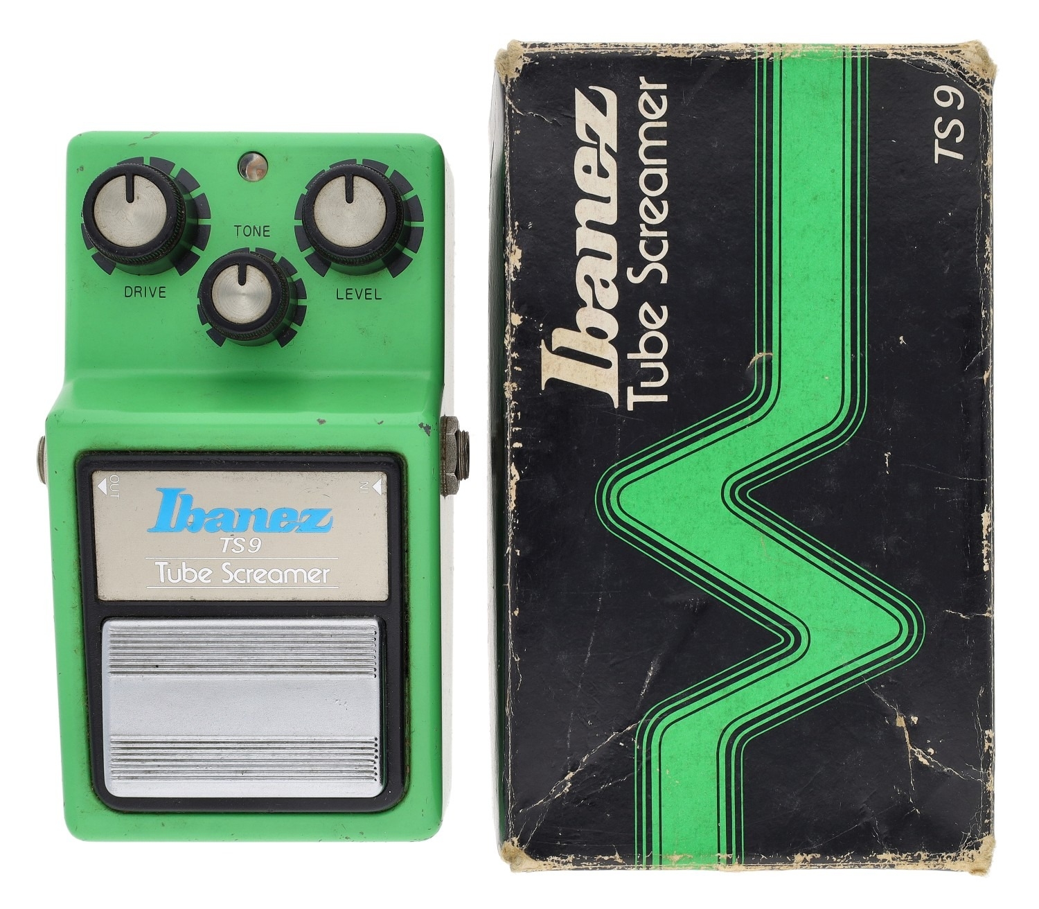 Early Ibanez TS9 Tube Screamer guitar pedal, made in Japan, circa 1981, black label, boxed
