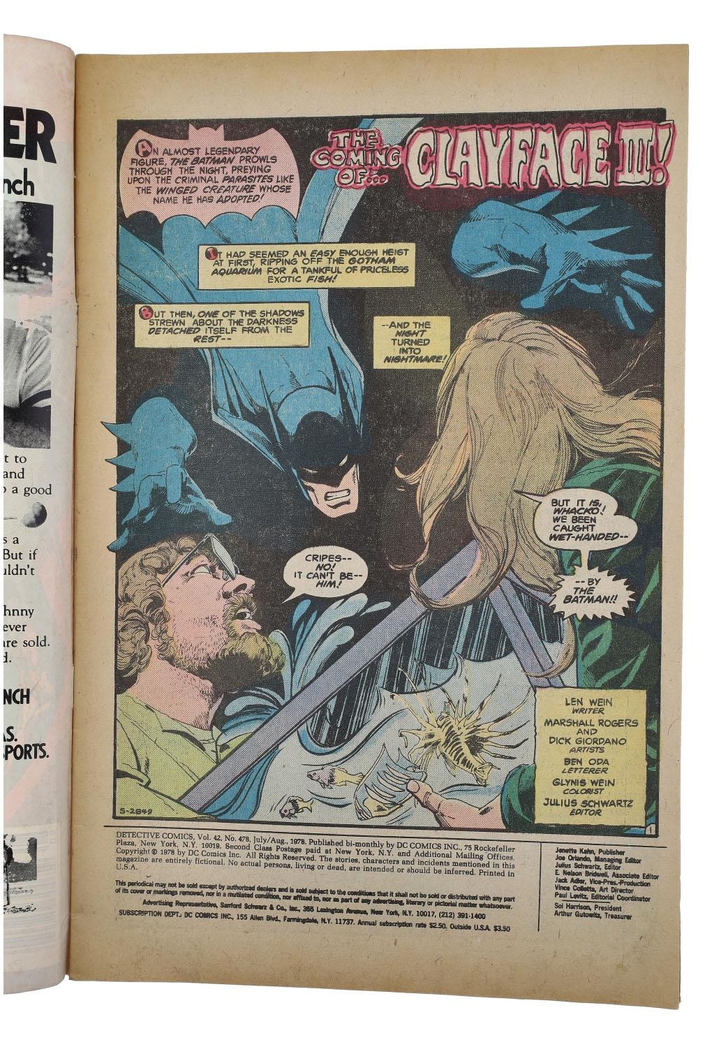 DC Comics, Detective Comics starring Batman 'Clayface is back!' issue #478, circa 1978, key issue, first appearance of 3rd Clayface, and also the introduction of Preston Payne, story by E. Nelson Bridwell & Len Wein, cover art by Marshall Rogers & Terry Austin