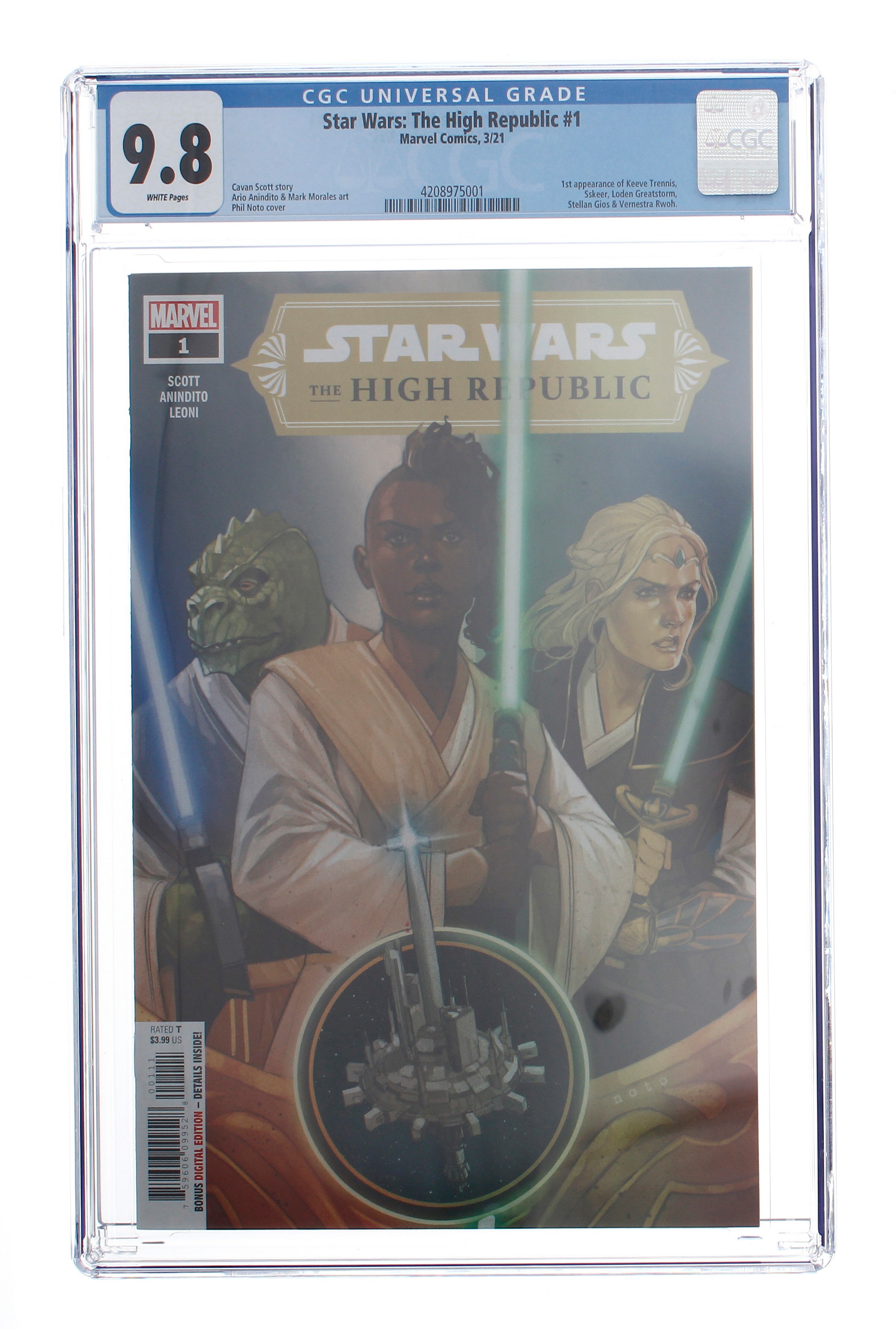 Marvel Comics, Star Wars The High Republic issue 1, circa 2021, CGC graded 9.8, white pages, 1st appearance of Keeve Trennis, Sskeer, Loden Greatstorm, Stella Gios & Vernestra Rwoh, Cavan Scott story, Ario Anindito & Mark Morales art & Phil Noto cover