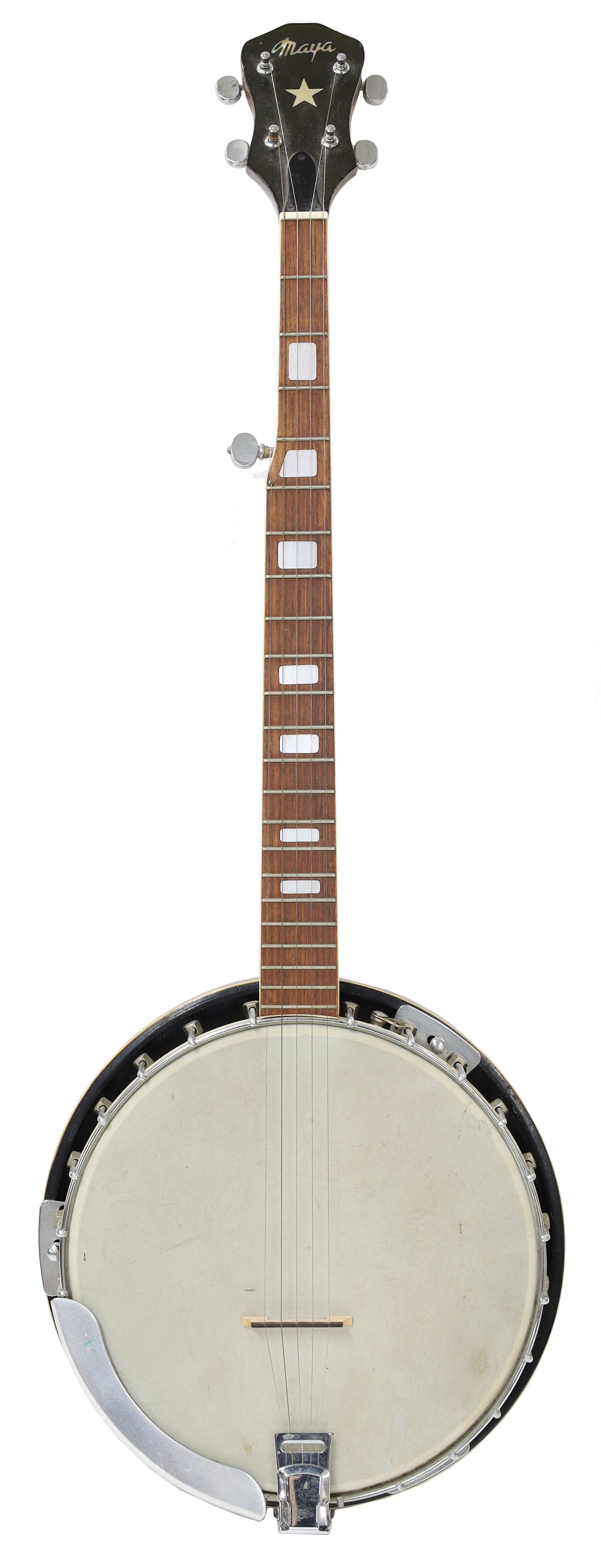 Maya five string banjo, with rosewood resonator, 11" skin and mother of pearl slot inlay to the fretboard, hard case