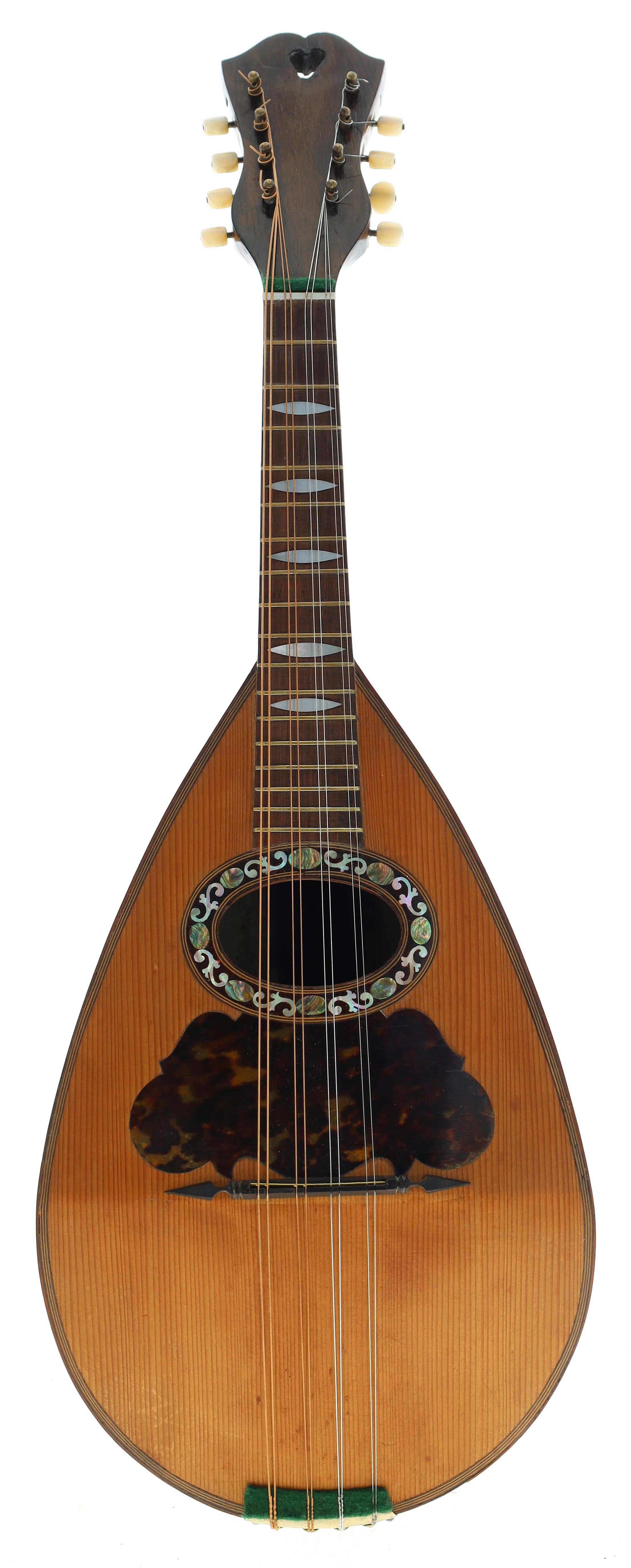 Neapolitan mandolin labelled ...Nicola & Raffaele Calace, Antonio...Napoli 1887, with segmented rosewood bowl back, spruce table and mother of pearl markers to the fretboard