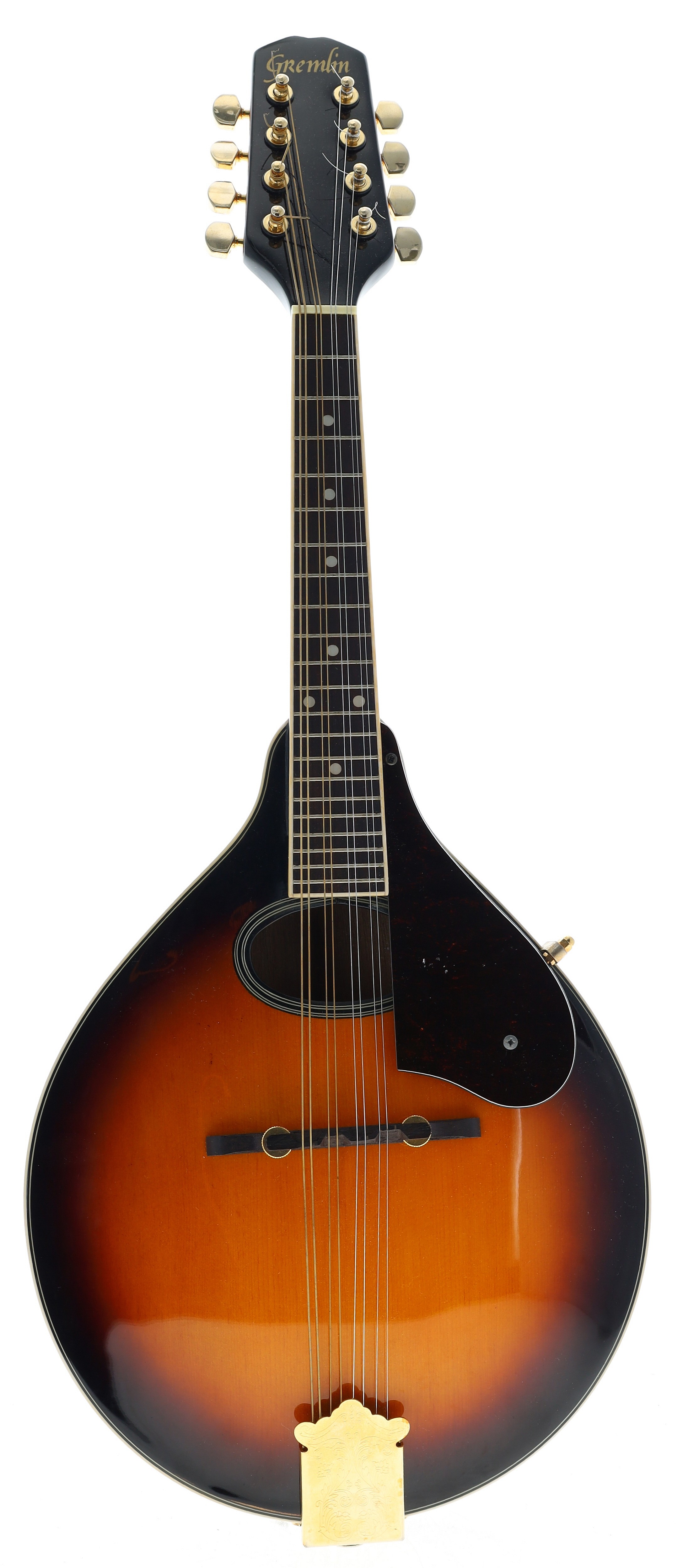 Gremlin pear shaped mandolin with sunburst body, with soft case and two tutors