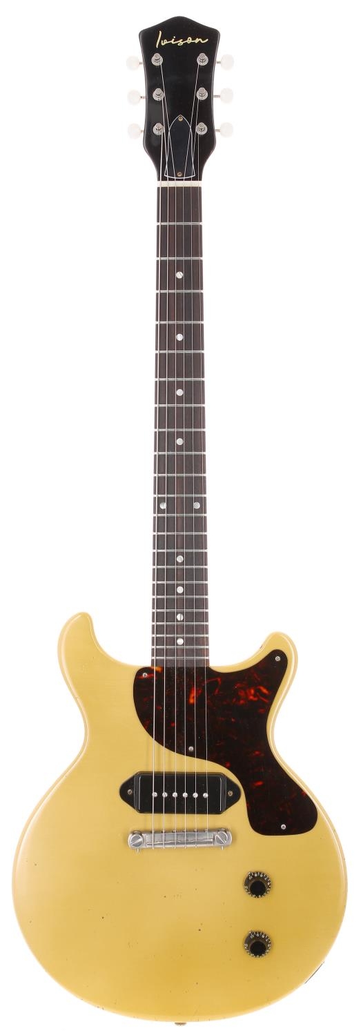 2024 Ivison DC '59 electric guitar, made in England; Body: aged TV yellow finished mahogany; Neck: mahogany; Fretboard: Indian rosewood; Frets: good, Jescar 45100 wire; Electrics: working, Ivison '59 P90 Alnico 2 pickup; Hardware: good, Gotoh Kluson style tuners and Faber compensated bridge; Case: original Hiscox branded hard case enclosing certificate of authenticity/checklist card; Weight: 3.34kg; Overall condition: very good
